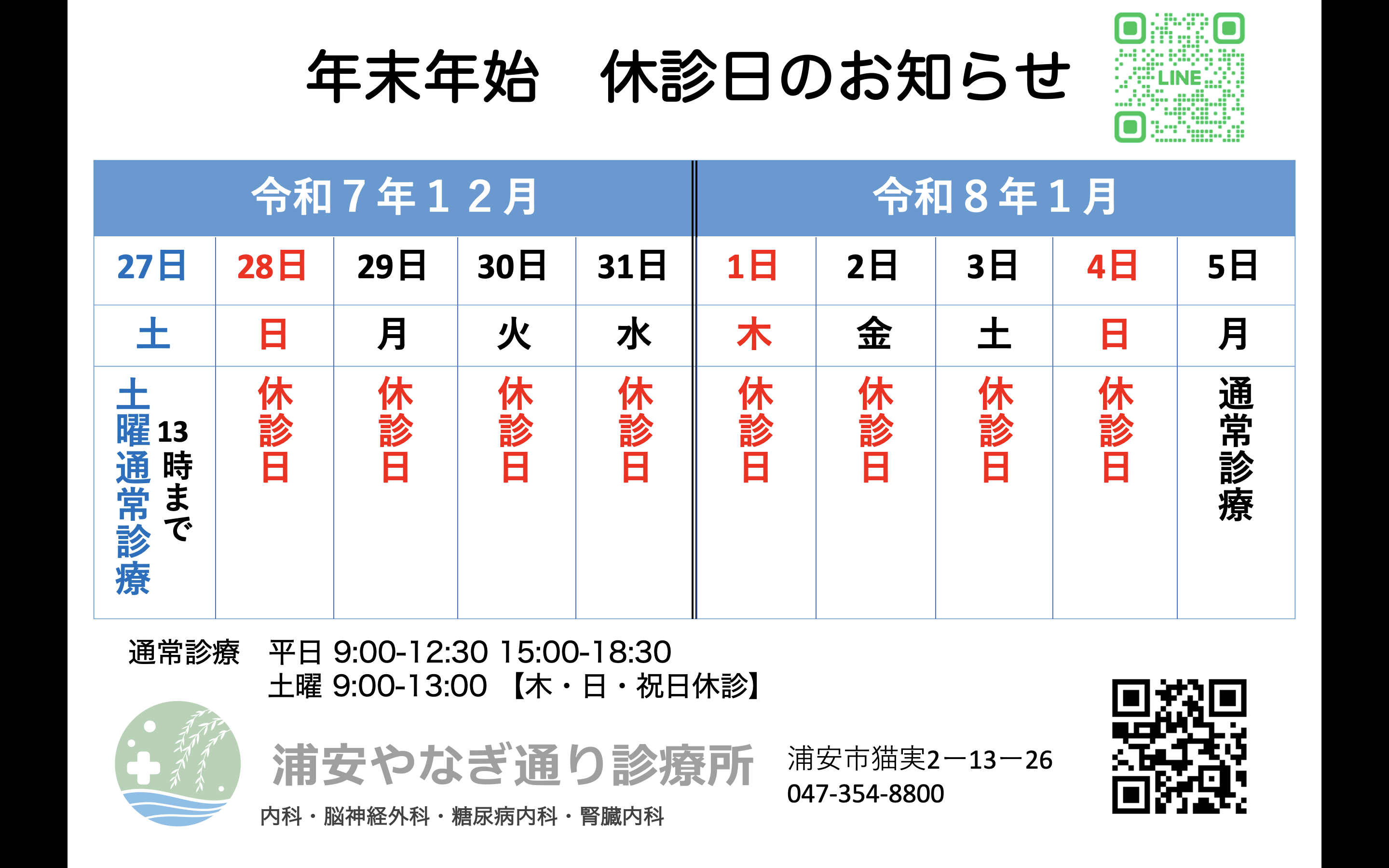 休診日:令和7年12月28日(日)から令和8年1月4日(日)